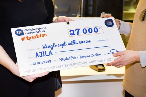 Deux établissements se sont démarqués, et ont cumulé le plus de pas : les Hôpitaux Privés Jacques Cartier et Antony avec respectivement 2 596 800 pas et 2 539 700 pas. Mardi 30 et mercredi 31 Janvier 2018, ce sont donc dans ces deux établissements que se sont déroulées les remises de dons aux deux associations. L’occasion pour la Fondation d’entreprise de remercier à nouveau l’ensemble des participants aux 72h Générations Prévention et de leur donner rendez-vous l’année prochaine pour tenter de battre leurs records !