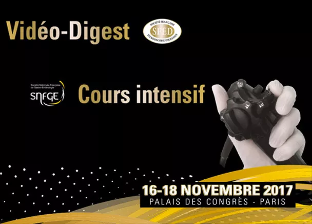 Informations pratiques : L'édition 2017 du Vidéo-Digest est organisée par la SFED et associée au Cours Intensif de la SNFGE ; elle a lieu du 16 au 18 novembre au Palais des Congrès 2, place de la Porte Maillot, 75017 Paris.