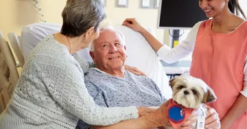 À l’Hôpital privé Le Bois (Hauts-de-France), chiens et chats visitent une fois par mois les patients en unité de soins palliatifs, leur apportant soutien affectif et sérénité.